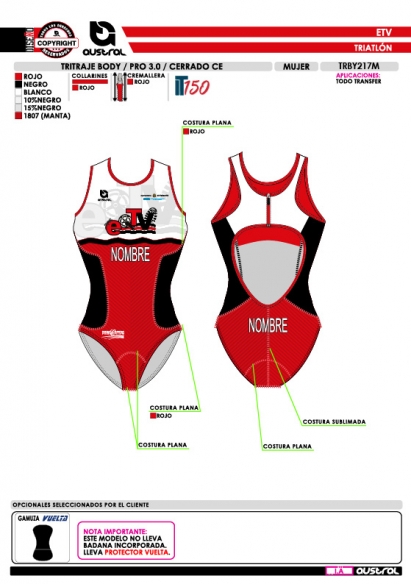 No olvide guardar su personalización para poder añadirla al carrito. En caso de no llevarla indicar "Sin Nombre" o "Sin Número" según proceda en la casilla correspondiente.Tritraje Body PRO 3.0 Cerrado de Triatlón