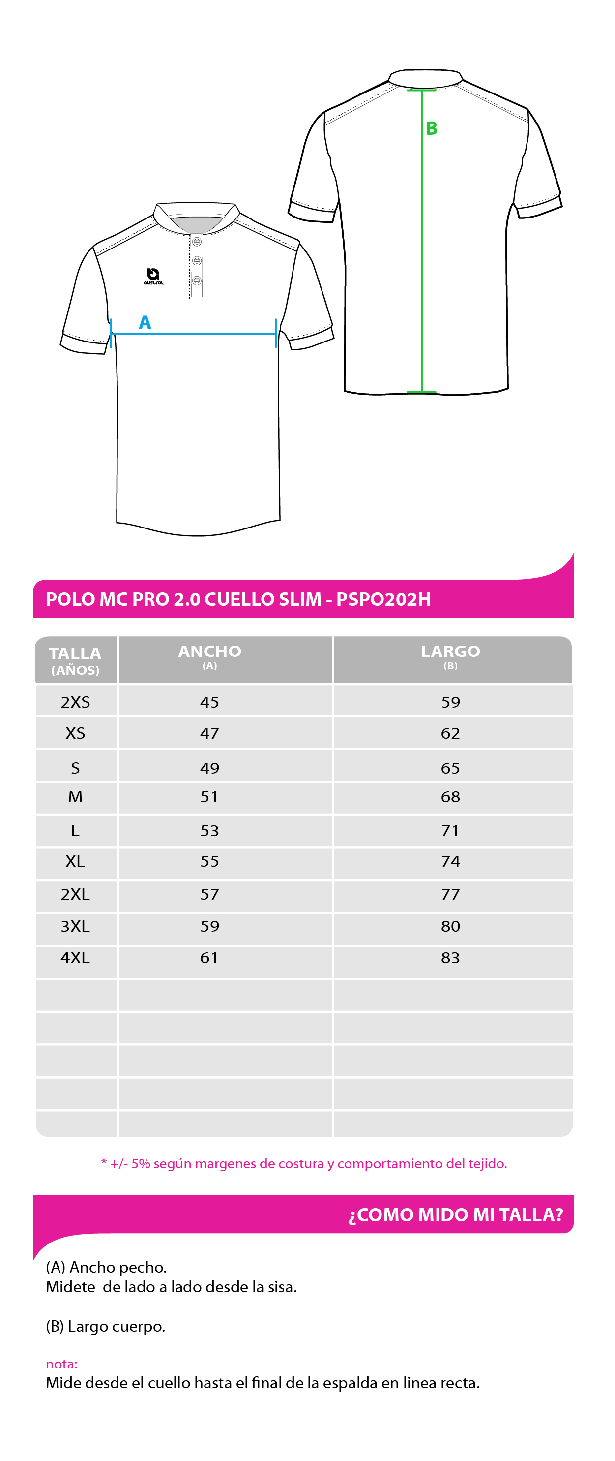 • Nombre del producto: Polo MC PRO 2.0 Cuello Slim.