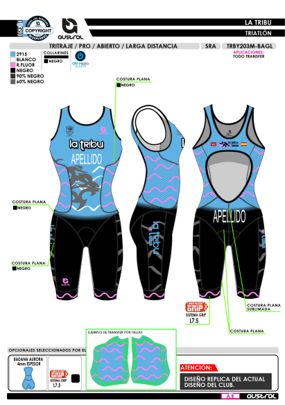 No olvide guardar su personalización para poder añadirla al carrito. En caso de no llevarla indicar "Sin Nombre" o "Sin Número" según proceda en la casilla correspondiente.- Nombre del Producto: Tritraje PRO abierto 2.0.