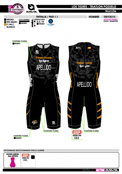 No olvide guardar su personalización para poder añadirla al carrito. En caso de no llevarla indicar "Sin Nombre" o "Sin Número" según proceda en la casilla correspondiente.- Nombre del Producto: Tritraje PRO 1.1.