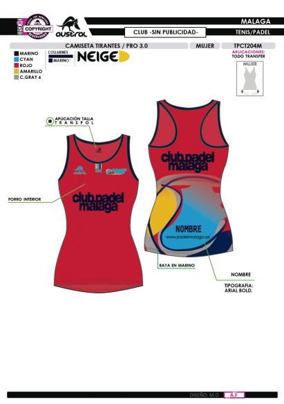 No olvide guardar su personalización para poder añadirla al carrito. En caso de no llevarla indicar "Sin Nombre" o "Sin Número" según proceda en la casilla correspondiente.Descripción de producto: Camiseta Tirantes PRO 3.0 para Tenis