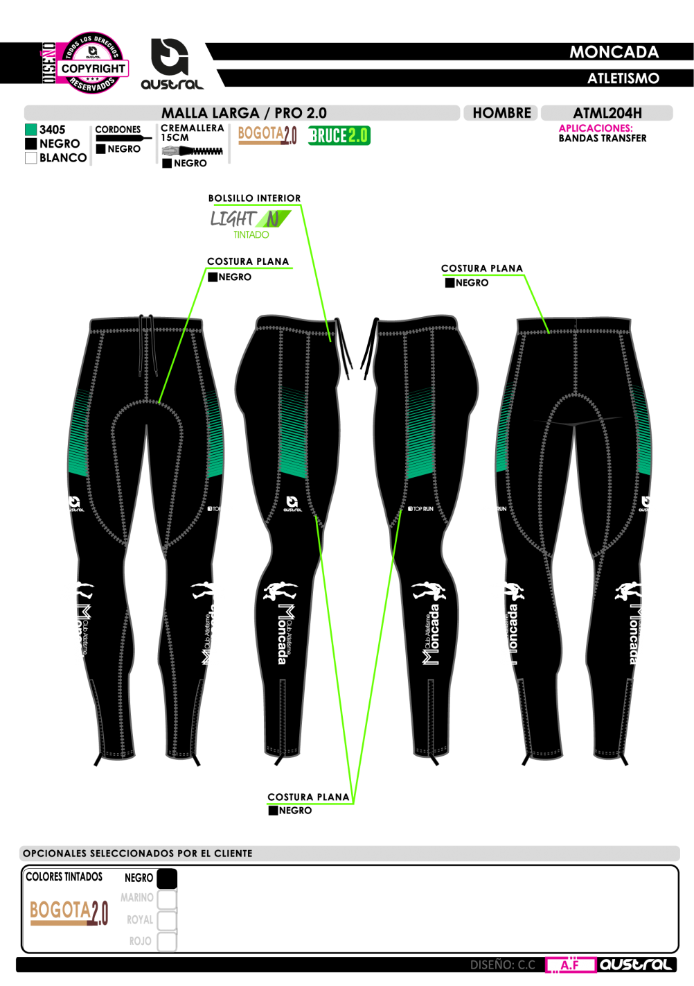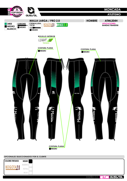 - Tintado con bandas en transfer personalizadas: Permite una apariencia única y personalizable según las necesidades del atleta.