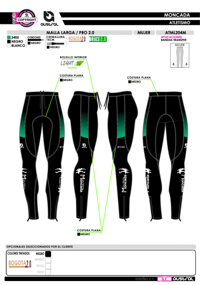 - Tintado con bandas en transfer personalizadas: Permite una apariencia única y personalizable según las necesidades del atleta.