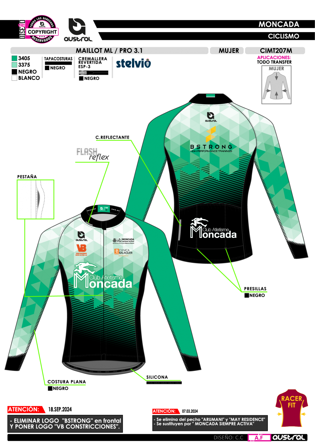 3. Secar al aire para mantener la calidad del sublimado y del tejido Stelvio.