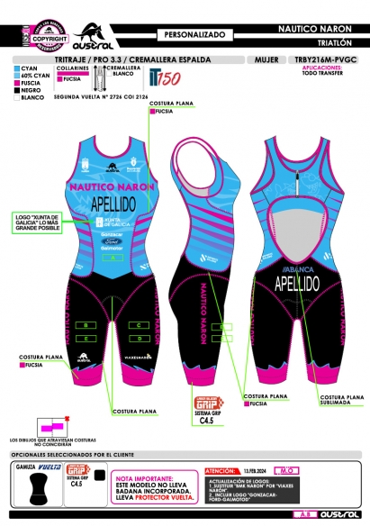 No olvide guardar su personalización para poder añadirla al carrito. En caso de no llevarla indicar "Sin Nombre" o "Sin Número" según proceda en la casilla correspondiente.Tritraje PRO 3.0 Cerrado CE de Triatlón