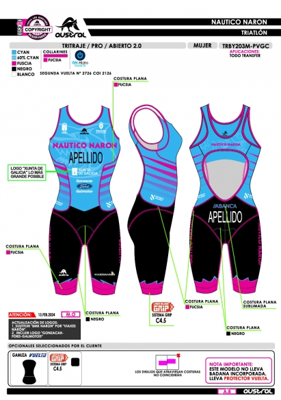 No olvide guardar su personalización para poder añadirla al carrito. En caso de no llevarla indicar "Sin Nombre" o "Sin Número" según proceda en la casilla correspondiente.- Nombre del Producto: Tritraje PRO abierto 2.0.