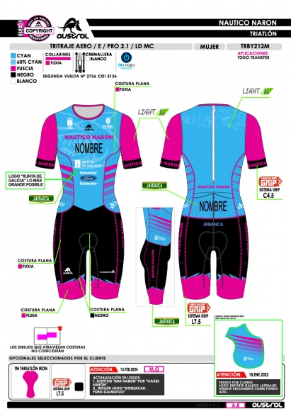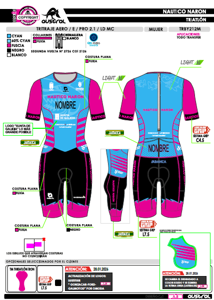 No olvide guardar su personalización para poder añadirla al carrito. En caso de no llevarla indicar "Sin Nombre" o "Sin Número" según proceda en la casilla correspondiente.- Nombre: Tritraje AERO E PRO 2.1 LD MC.