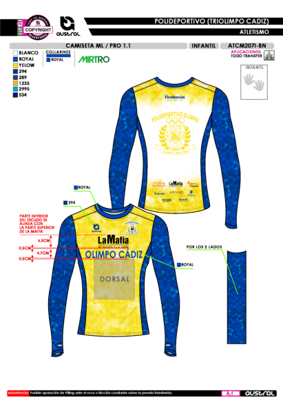Aunque nuestras prendas están fabricadas con materiales de alta calidad y siguiendo procesos avanzados de producción, es posible que, con el tiempo y el uso intensivo, aparezca pilling (formación de bolitas) debido al roce o fricción constante en aquellas prendas realizadas con transfer sublimado, debido a la diferencia de color del hilo del tejido respecto al color de impresión. Esto puede ocurrir especialmente en áreas de mayor contacto y movimiento.
