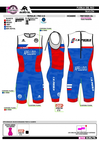No olvide guardar su personalización para poder añadirla al carrito. En caso de no llevarla indicar "Sin Nombre" o "Sin Número" según proceda en la casilla correspondiente.- Nombre del Producto: Tritraje PRO 2.0.