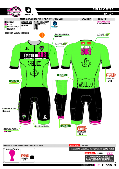No olvide guardar su personalización para poder añadirla al carrito. En caso de no llevarla indicar "Sin Nombre" o "Sin Número" según proceda en la casilla correspondiente.- Nombre: Tritraje AERO D PRO 2.1 LD MC: