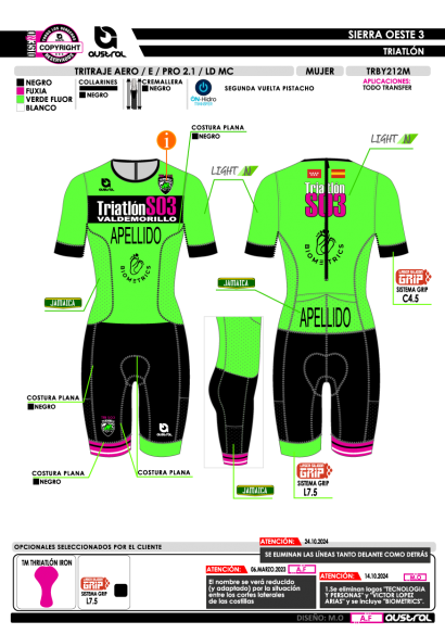 No olvide guardar su personalización para poder añadirla al carrito. En caso de no llevarla indicar "Sin Nombre" o "Sin Número" según proceda en la casilla correspondiente.- Nombre: Tritraje AERO E PRO 2.1 LD MC.