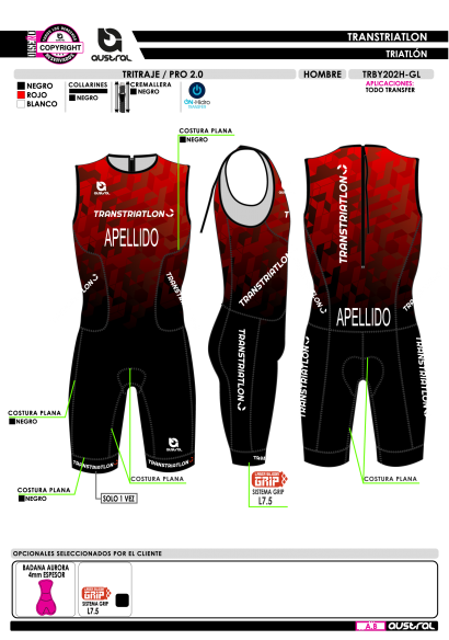 No olvide guardar su personalización para poder añadirla al carrito. En caso de no llevarla indicar "Sin Nombre" o "Sin Número" según proceda en la casilla correspondiente.- Nombre del Producto: Tritraje PRO 2.0.