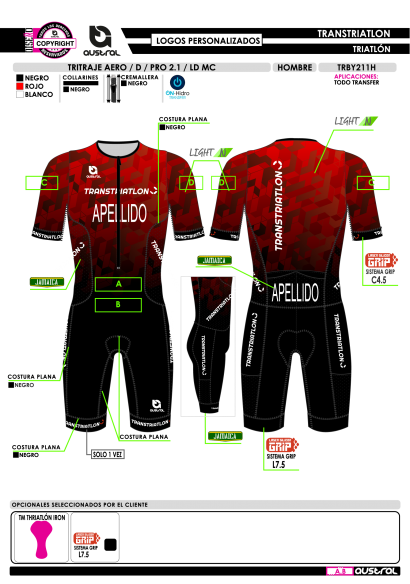 No olvide guardar su personalización para poder añadirla al carrito. En caso de no llevarla indicar "Sin Nombre" o "Sin Número" según proceda en la casilla correspondiente.- Nombre: Tritraje AERO D PRO 2.1 LD MC.