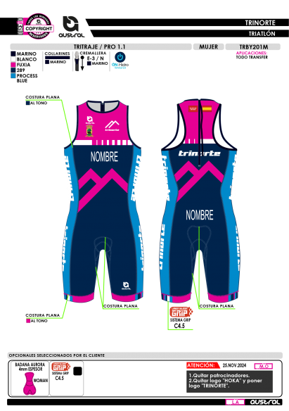 No olvide guardar su personalización para poder añadirla al carrito. En caso de no llevarla indicar "Sin Nombre" o "Sin Número" según proceda en la casilla correspondiente.- Nombre del Producto: Tritraje PRO 1.1.